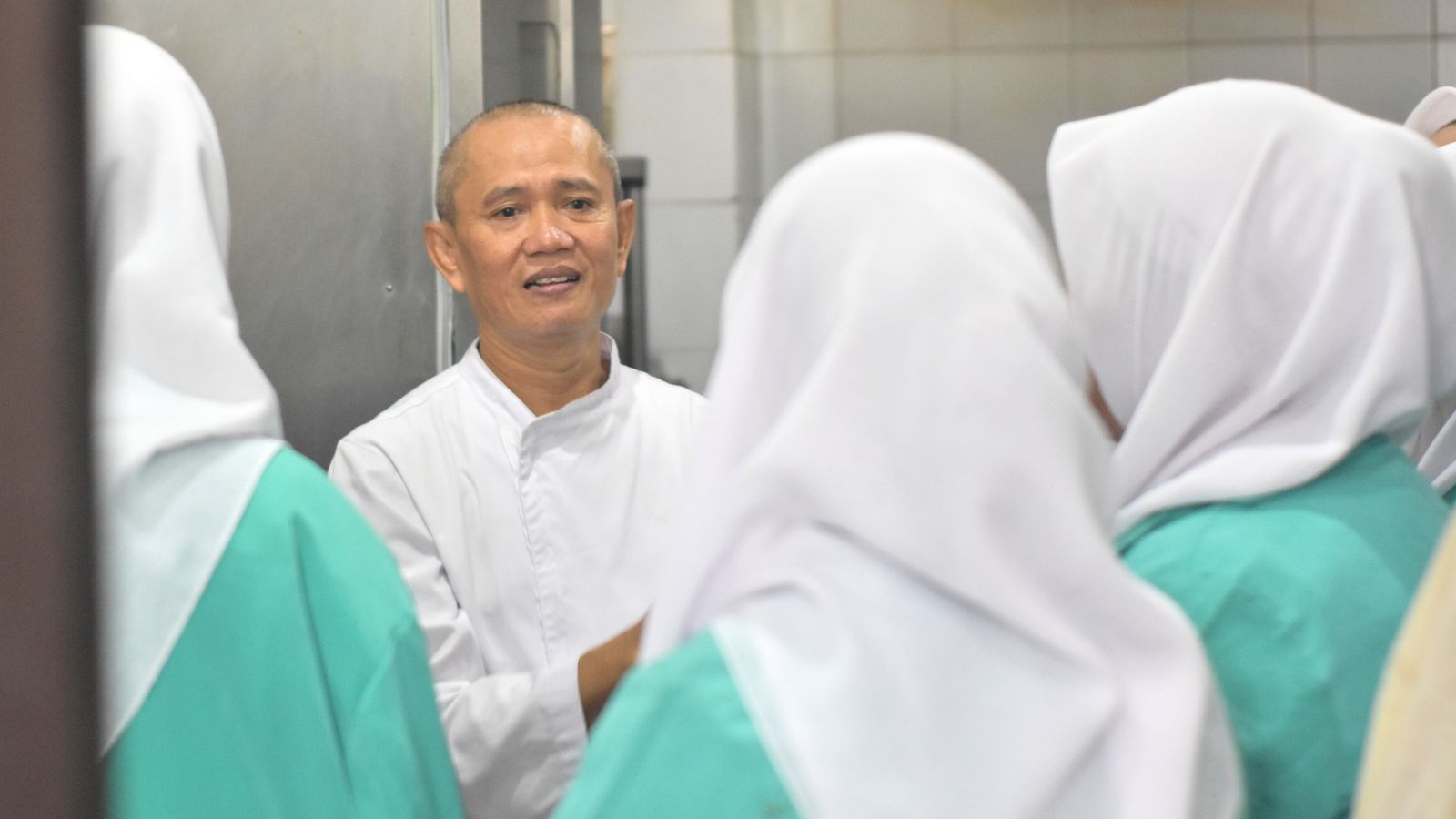 Momen yang paling dinantikan adalah sesi operasi profesional dan demonstrasi langsung bersama Chef Uning. Dalam sesi ini, Chef Uning berbagi pengalaman berharga mengenai cara kerja dapur profesional dan manajemen operasional di hotel. Siswa tidak hanya belajar tentang rasa masakan, tetapi juga tentang kedisiplinan, kebersihan, dan seni penyajian piring (plating) yang estetis.